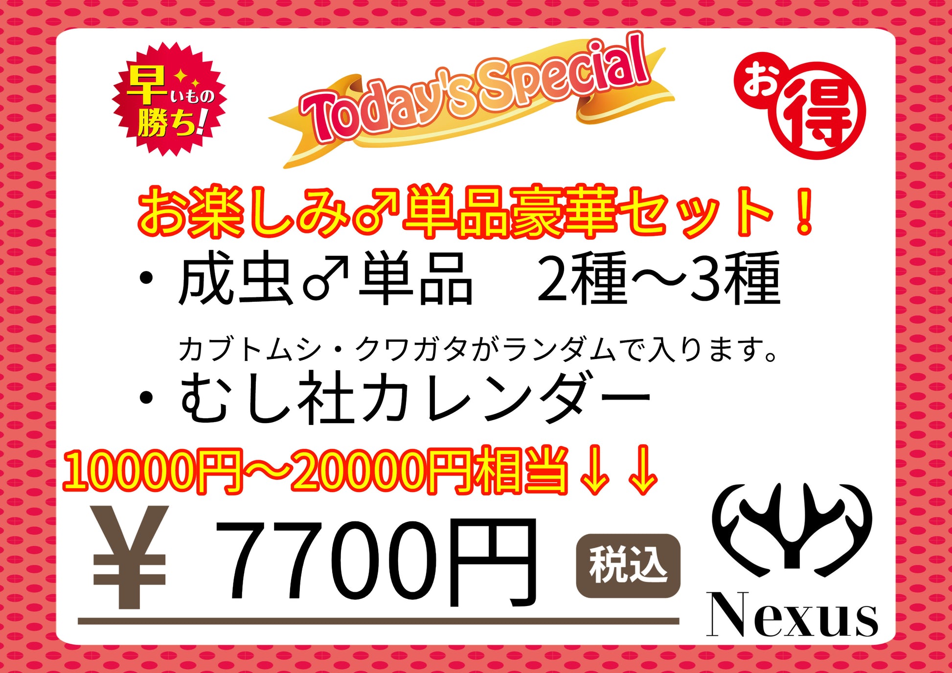 ・♂単品のクワガタ・カブトムシがランダムで2種~3種入ってます。